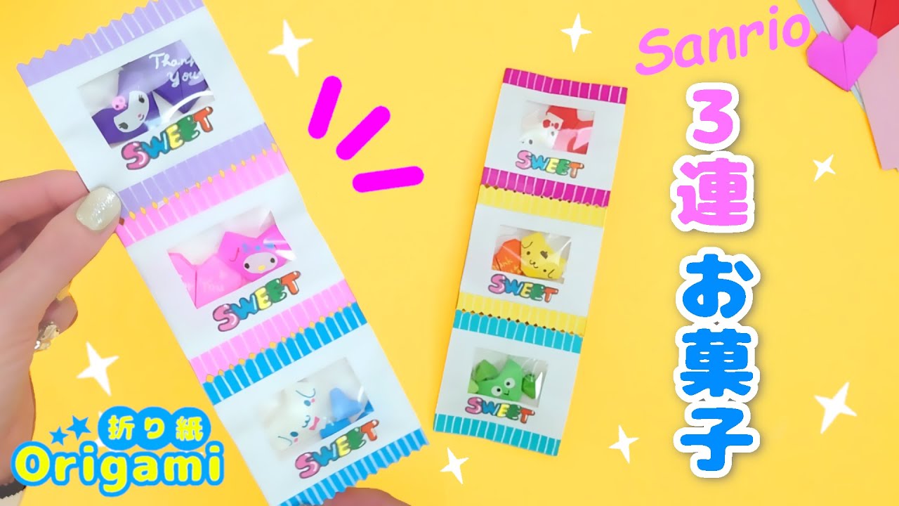 【折り紙】簡単🥰サンリオ3連お菓子を手作り💙ラッピングや遊びにも♪ How to make Origami sanrio 산리오 종이 접기 – SodaCatOrigami 楽しい折り紙♪