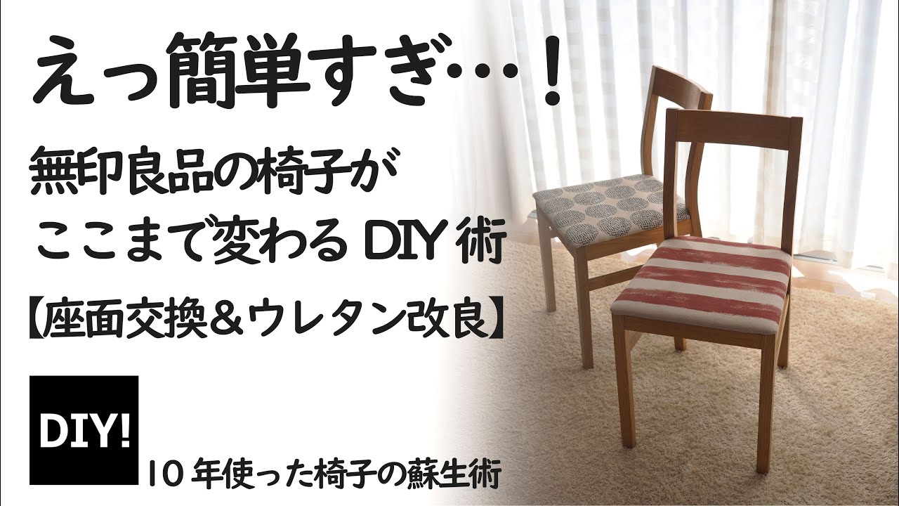 | タイトル | 【カンタンDIY!】座面、実は簡単に交換できるって知ってた?10年使った無印のダイニングチェアが新品以上に!?ウレタンスポンジも好感して、座り心地も最高に!! |