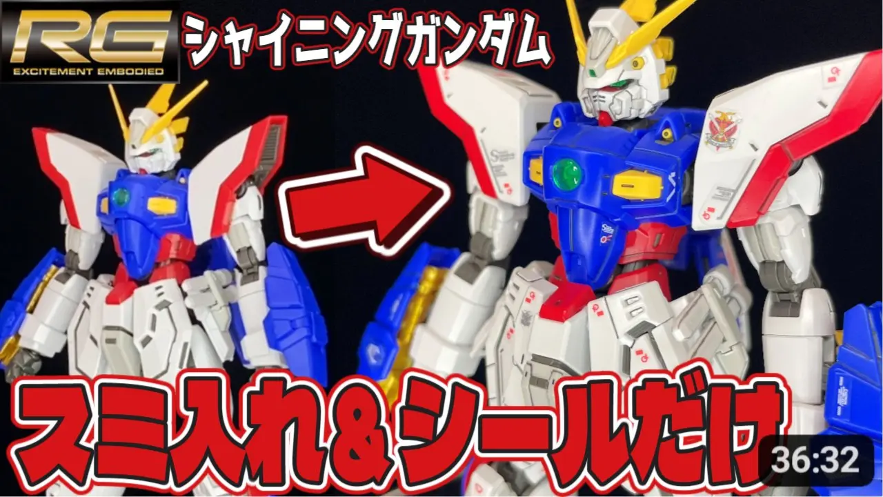 タイトル【初心者必見】RGガンプラをお手軽フィニッシュで簡単にカッコよく仕上げる方法を紹介【塗装なし、エアブラシなし!】【機動武闘伝Gガンダム】RGシャイニングガンダム Gunpla custom build