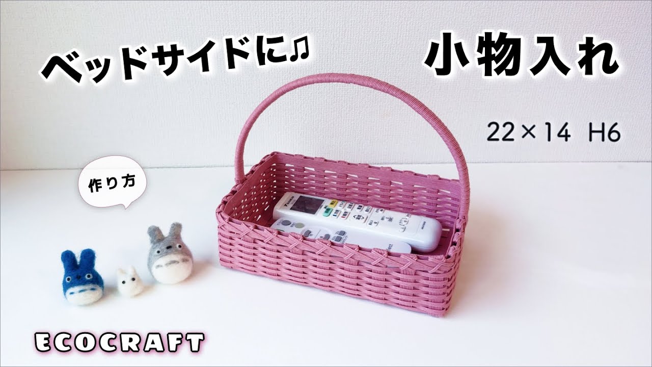 | タイトル | ベッドサイドの小物入れかご簡単作り方♪リモコンケースやメガネ、スマホ、充電器などを収納♪持ち手付きで便利♡お菓子を入れたりメイク収納に使ったりプレゼントにも♡エコクラフト ・クラフトバンド・紙バンド |