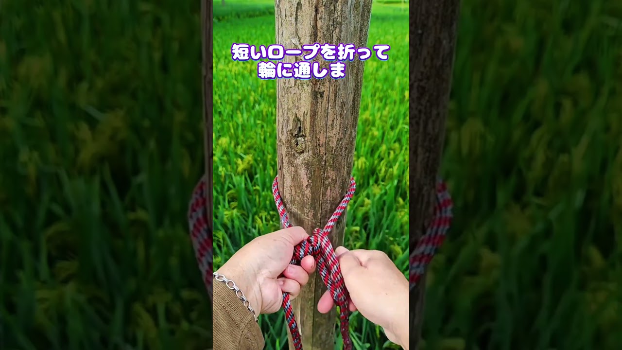 タイトル【アウトドアロープの最強結び方】ピンと張れて簡単収納!#ロープ結び #アウトドア技 #物干しロープ