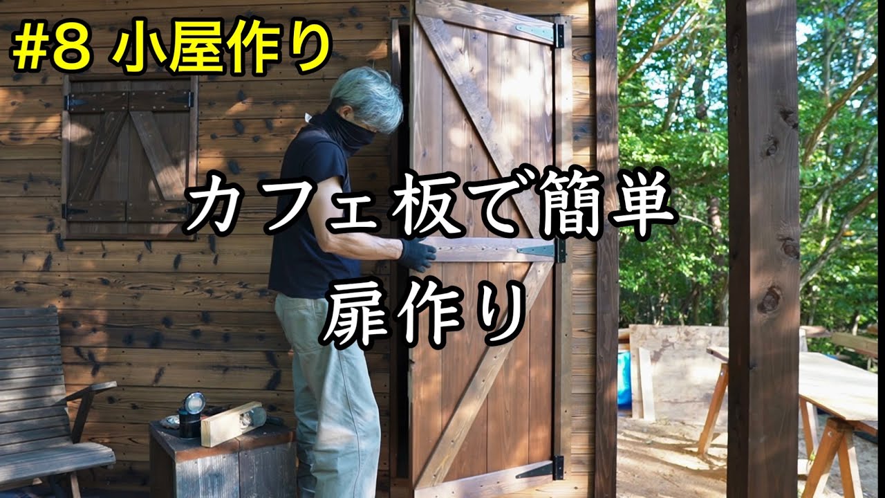 タイトル【小屋DIY】#8 カフェ板で簡単に扉作り/初めてのドアノブ取付