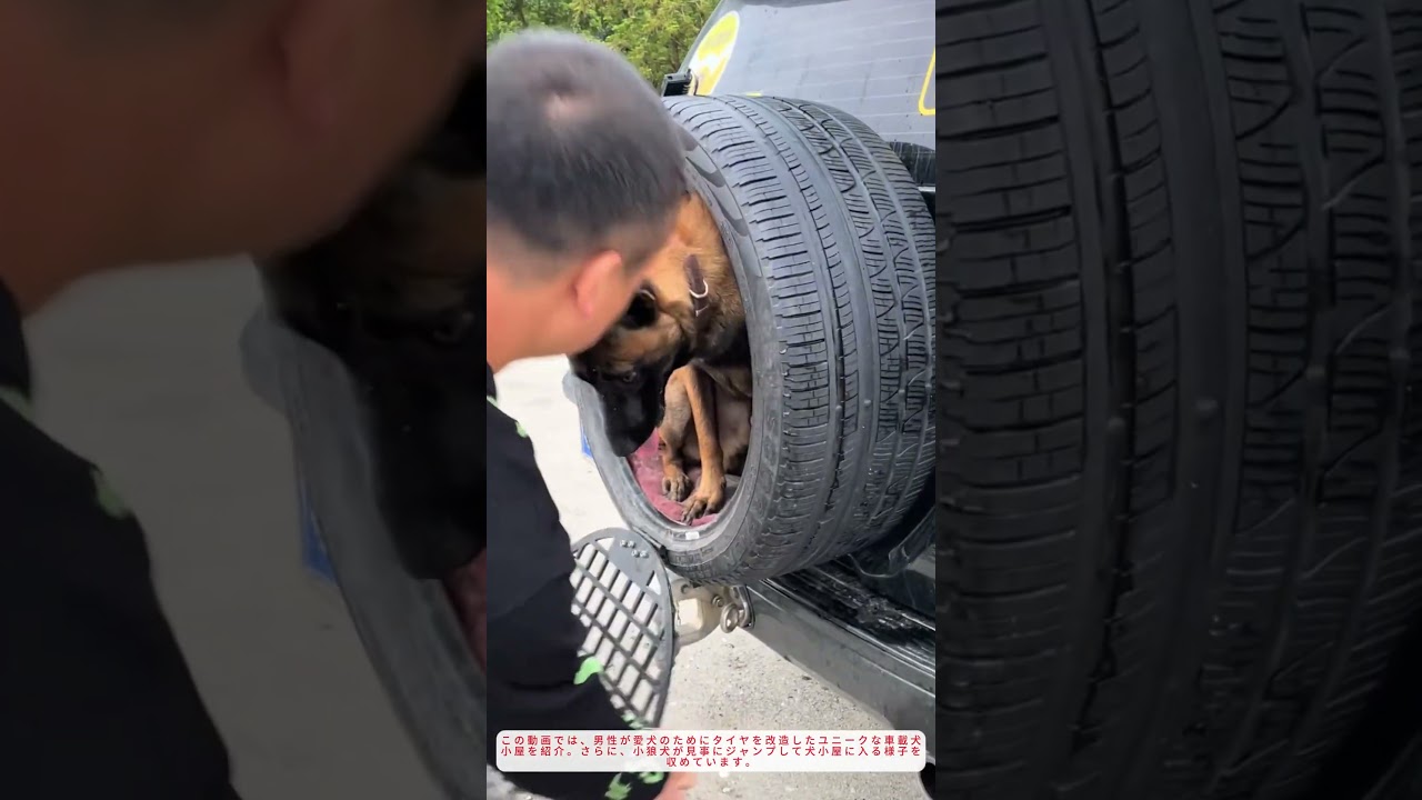説明文「創造力は、日常の不便から生まれる」この動画では、男性が愛犬のためにタイヤを改造したユニークな車載犬小屋を紹介。さらに、小狼犬が見事にジャンプして犬小屋に入る様子を収めています。【DIYのポイント】廃...